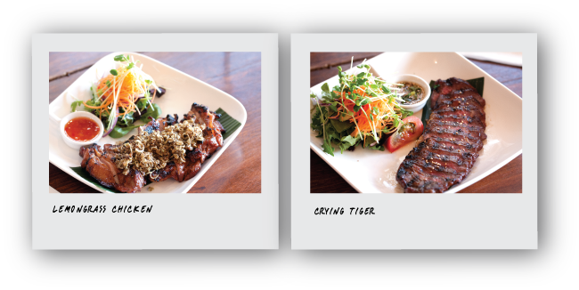 Grilled marinated pork then tossed lightly in homemade spicy sauce, red onion, mint leaves, coriander ground roasted rice and finished with Thai herb salad